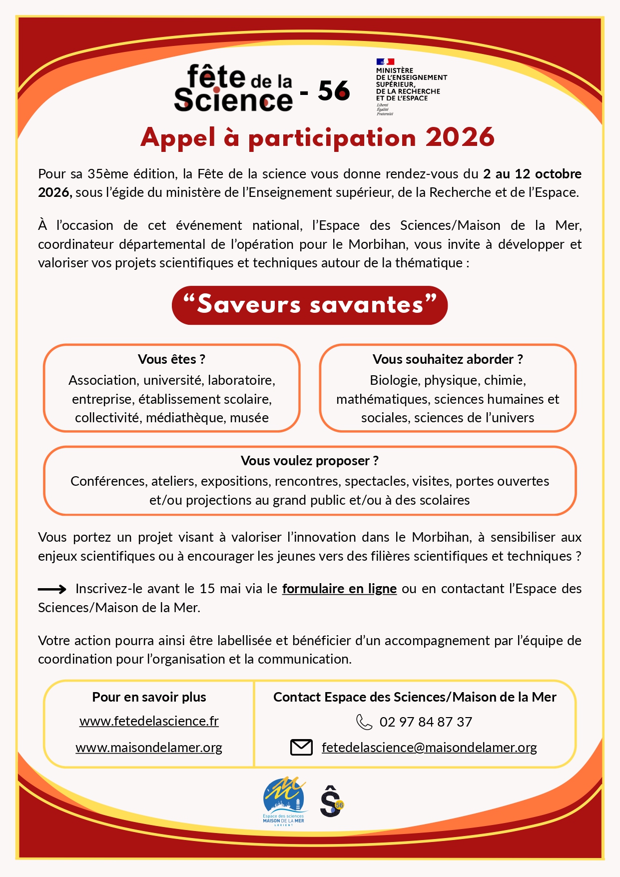Pour participer à la Fête de la science 2026 dans le Morbihan, les structures doivent remplir le formulaire en ligne disponible sur les sites dédiés.