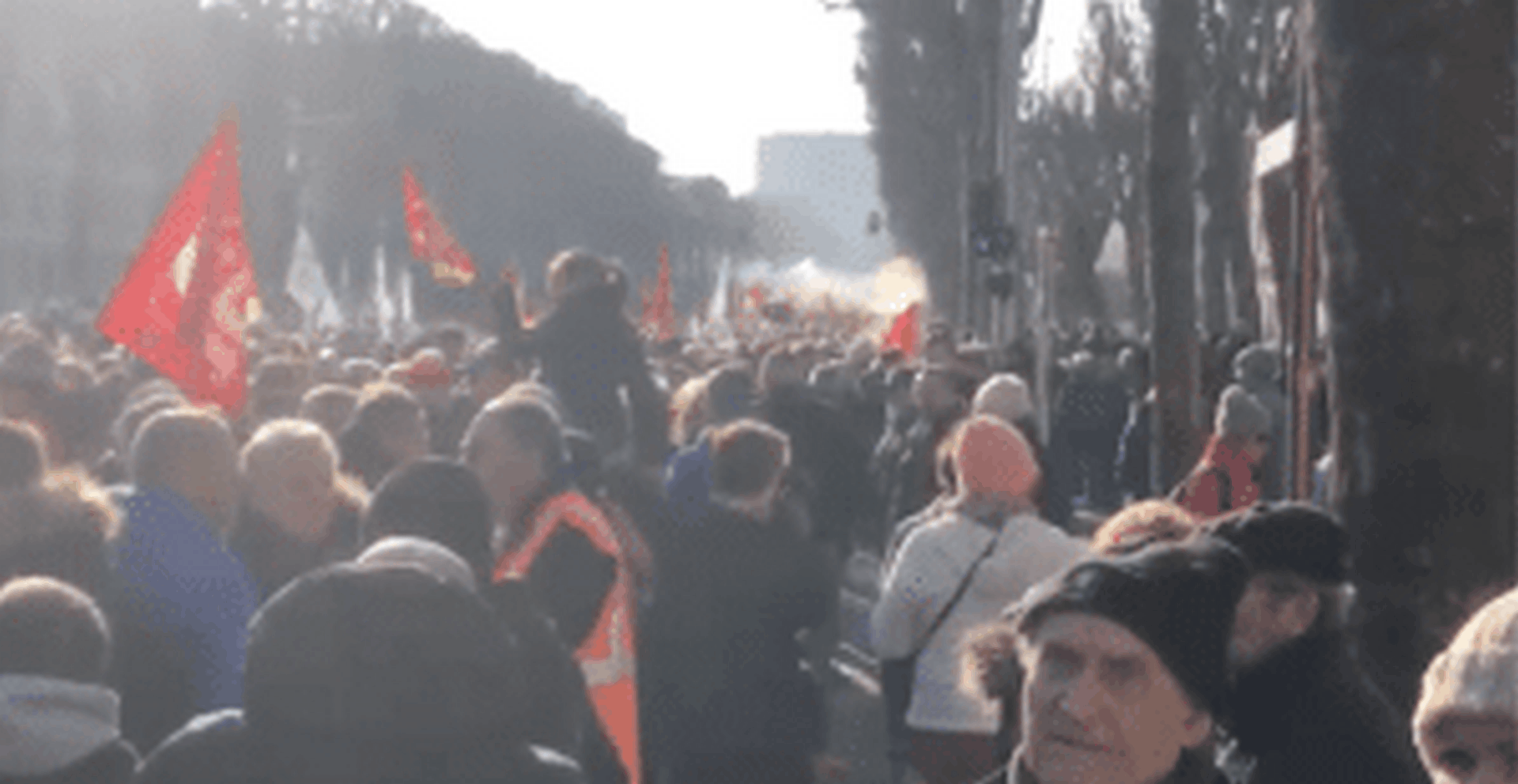 Début de la manifestation sur le rond-point de la Base à Lorient contre la réforme....