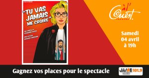 Gagnez vos places pour voir “Tu vas jamais me croire” au Théâtre à l’Ouest d’Auray !