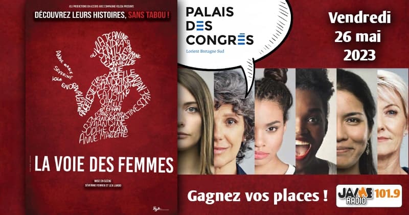 Gagnez vos places pour le spectacle LA VOIE DES FEMMES au Palais des Congrès de Lorient. Publié 11 mai 2023 à 800 × 420 dans Gagnez vos places pour le spectacle LA VOIE DES FEMMES au Palais des Congrès de Lorient. Gagnez vos places pour le spectacle LA VOIE DES FEMMES au Palais des Congrès de Lorient. Gagnez vos places pour le spectacle LA VOIE DES FEMMES au Palais des Congrès de Lorient. ← Précédent Suivant →