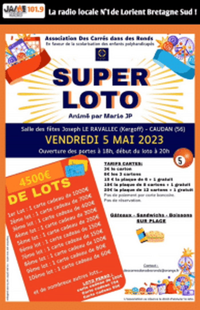 L’association des Carrés dans des Ronds organise son Super Loto le vendredi 5 Mai à....