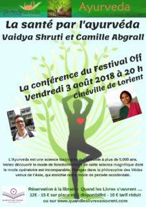 CONFERENCE SUR LES PRINCIPES DE BASE DE L’AYURVEDA à LORIENT – VENDREDI 3 AOÛT à 20H !!!