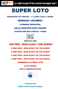 Dimanche de Pâques, c’est Super Loto à Inzinzac-Lochrist !
