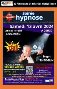 L’association Johnny l’envie d’avoir envie de Guidel organise une soirée hypnose le samedi 13 Avril....