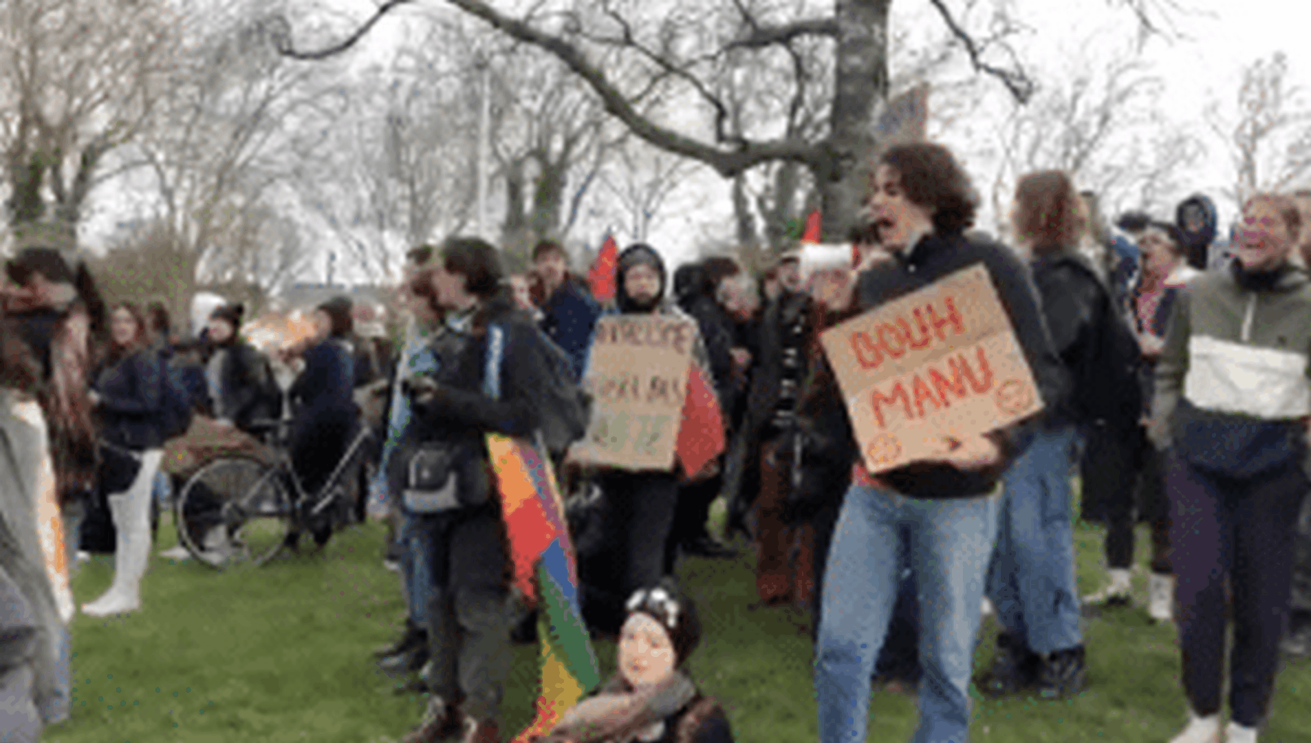 Début de la manifestation sur le rond-point de la Base à Lorient contre la réforme....