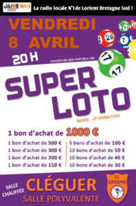 Vendredi 8 avril, venez au Super Loto organisé par le FC Kerchopine à Cléguer, animé....